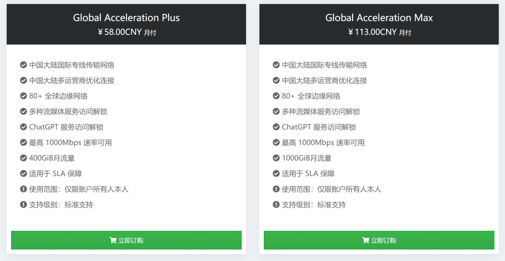 - Global Acceleration Max: 如果你是流量大户,或者有团队使用需求,那直接上顶配套餐,体验拉满。